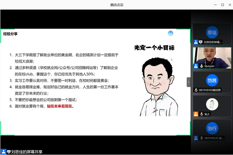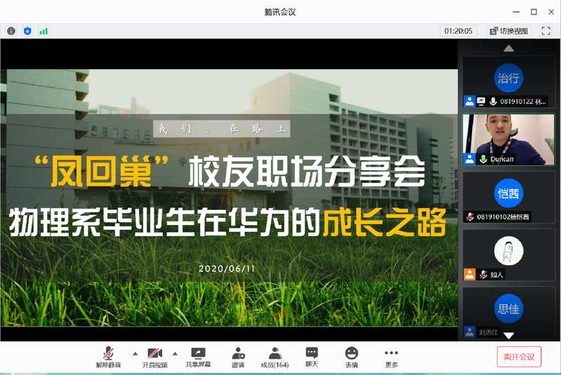 6月11日,理学院线上素养公开课暨“凤回巢”校友职场分享会于线上开展。理学院2017届光电工程方向毕业生、华为马来西亚市场产品经理蒋孝鑫受邀参与了本次活动。