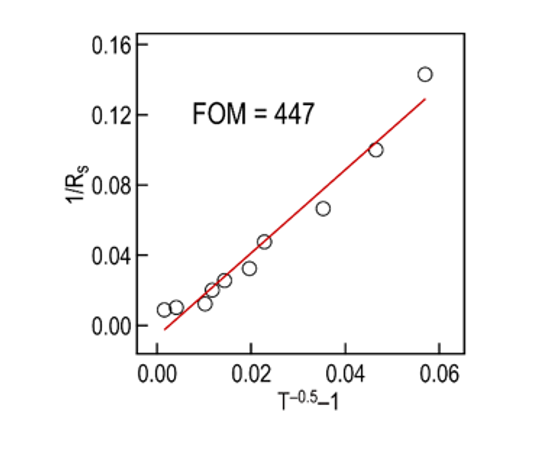 借助银纳米线高长径比的特点,研究团队通过简单的迈耶线棒方法把银纳米线均匀地平铺在柔性基底上面,使银纳米线呈现出相互连接交错的网格结构,从而制备出了柔性透明的电磁屏蔽薄膜。此外,为了进一步提高薄膜的导电性和光透过率,团队使用硼氢化钠对薄膜进行了浸泡处理,处理后的薄膜在透光率达到94.5%时,电阻仅为21 Ω sq−1。随后,为了进一步提高薄膜的稳定性,在薄膜上均匀的覆盖了一层PMMA透明保护层,不仅极大提高了薄膜的稳定性,使其在80 ℃/80%湿度的恶劣环境下可以保持30天的稳定,还极大降低了薄膜表面的粗糙程度降低了光散射。通过拟合PET/Ag NW/PMMA复合薄膜方阻及透过率之间的关系,复合薄膜的品质因数达到447,证明复合薄膜有着十分优异的光电性能,其电磁屏蔽效能以及光电性能优于目前报道过的大多数透明电磁屏蔽材料。