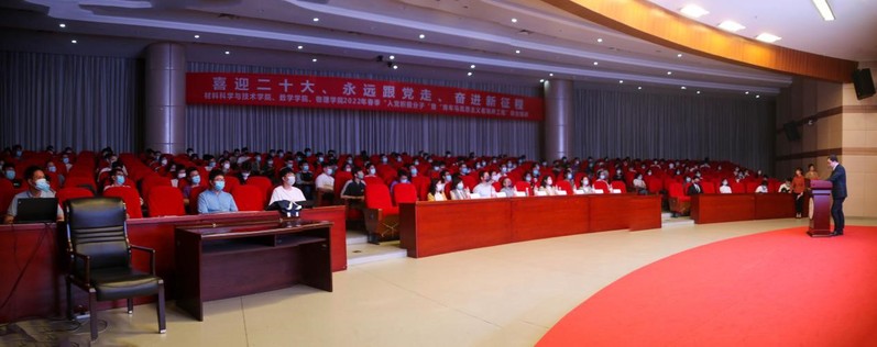 5月9日晚,材料科学与技术学院、数学学院、av频道 联合举办的2022年春季“入党积极分子”暨“青年马克思主义者培养工程”培训在将军路校区一号楼四楼报告厅顺利举行。马克思主义学院教授平旭、材料科学与技术学院党委书记石勇、av频道 党委书记陈修文、数学学院党委副书记周佼佼、材料科学与技术学院党委副书记庄晓舒、各学院组织员、团委书记、辅导员以及本期培训班全体学员参加了本次培训。培训由材料科学与技术学院团委书记徐萍主持。