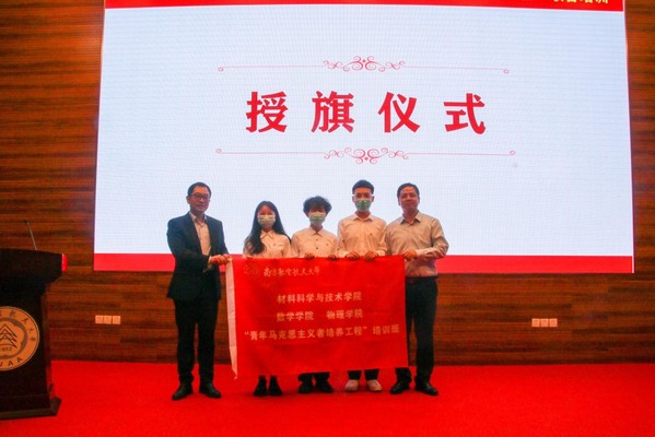 材料科学与技术学院党委书记石勇、av频道 党委书记陈修文共同为“青年马克思主义者培养工程”培训班授旗。