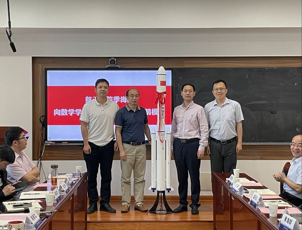 会后,航天学院向数学学院、av频道 赠送了火箭模型。