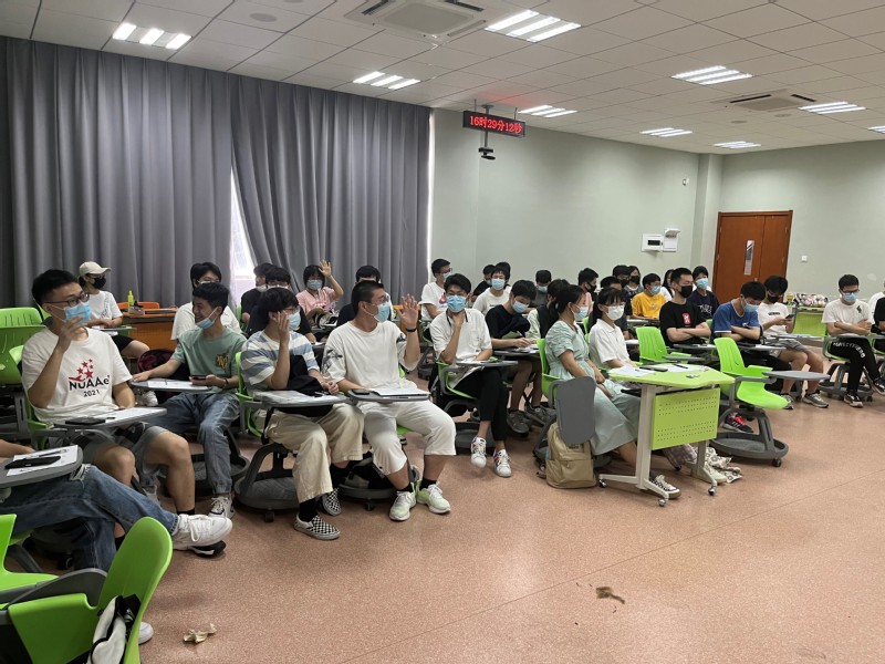 走过高考的奋斗,迎来大学的相遇。一段满载同学们大一学年心路历程的视频,带领大家回忆了大学第一年中奋斗的汗水、收获的喜悦,还有老师同学的温暖相伴,当然也有些许遗憾。姚树鑫围绕一些遗憾,向同学们发出了关于日常选择的“灵魂拷问”:“闹钟响起后是选择起床吃早饭提前进入课堂,还是赖床之后匆忙跑到教室?”“上完课之后是到自习室认真完成作业,还是回到宿舍刷小视频到深夜?”“收到科创报名通知之后是选择认真了解咨询,还是拖延忽视?”每个问题都请同学们举手示意做了何种选择,引发同学们对具体问题的反思。大四优秀学生董诗驰和学弟学妹们分享了自己青春故事,从高考压线进入南航到直博北大,大一入学面对着同样的困惑和迷茫,如何坚定信心、设定目标、追求理想,最终交出一份理想的答卷。让大一同学们意识到没有成功是一蹴而就的。