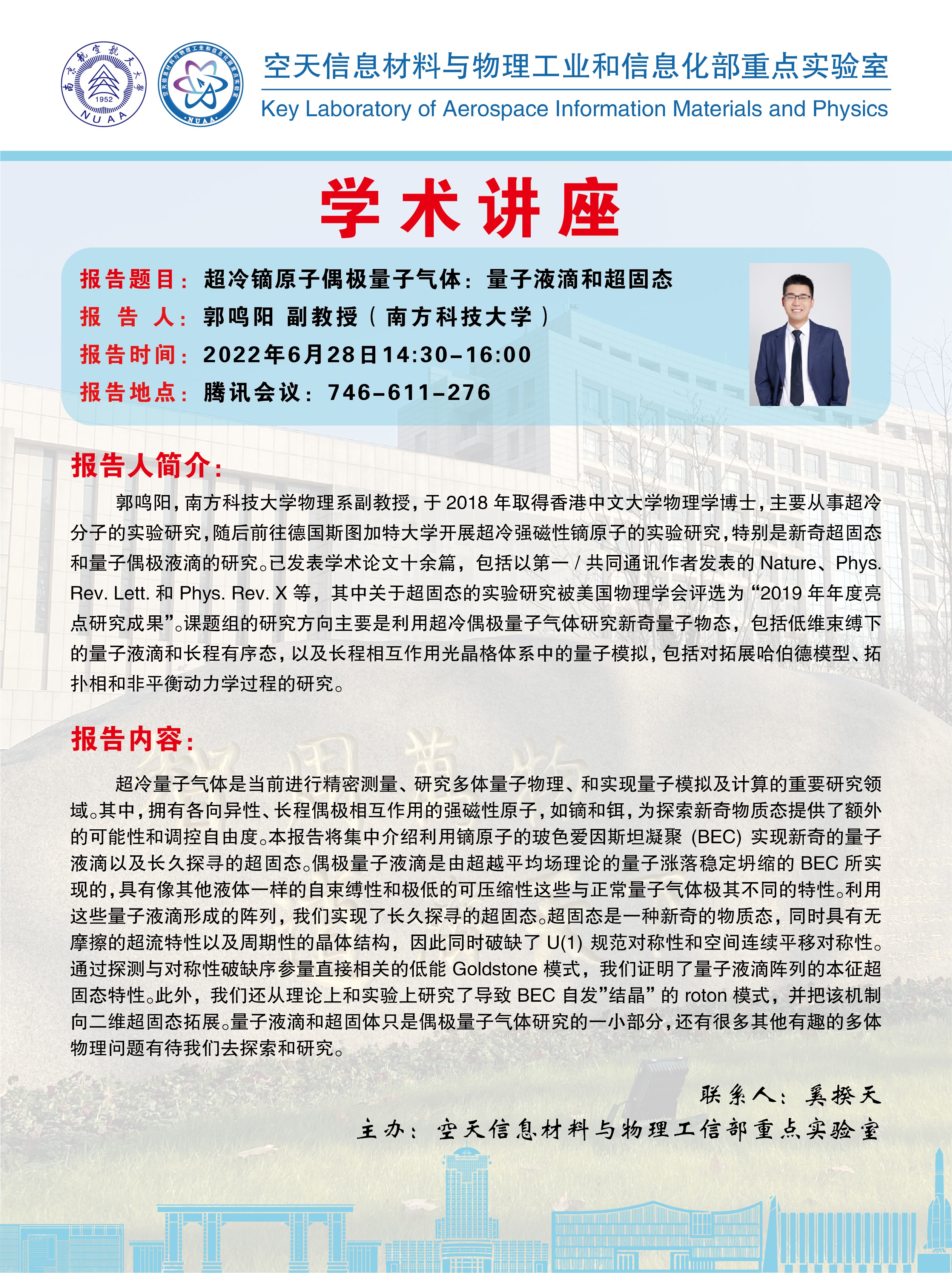 审核:超冷镝原子偶极量子气体:量子液滴和超固态