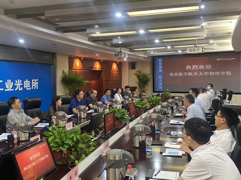 在613所,所党委委员、副所长胡磊力,总监、党委干部部/人力资源部部长刘保国,副总工程师王刚、张鹏,光电系统一部部长、党总支书记李莉,瞄准显示系统研发部部长、党总支书记张海军,党建文宣部副部长赵建森、创新发展部副部长冯长远、纪检部副部长水猛等热情接待了学院师生一行。刘保国陪同参观了单位展厅、光电试验塔、重点实验室等。师生共同了解了613所发展历程、产品谱系,深刻感受到了不惧风雨、矢志报国的家国情怀。座谈中,胡磊力代表613所致欢迎辞,特别指出单位有180余位南航校友,很多都在中层中坚岗位,为613所的发展做出了重要贡献,他表示非常期待和南航av频道 进一步加深科研就业等方面的合作。陈修文表示,为党育英才、为国铸重器是南航的责任,与613所矢志国防装备事业腾飞是一脉相承的,希望南航物理基础学科的毕业生在未来能够助力国防基础研究实现“从0到1”的突破。刘友文介绍了学校及学院的发展历程,指出了av频道 科学研究、人才培养与企业需求可对接合作的发展空间。