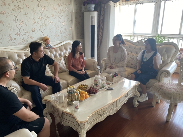 在大三学生高璐婷家中,陈修文介绍了当前学院发展和学生成长总体情况,了解到该生现阶段存在学习时长不算短、但学习效率不太高的问题,他根据学生叙述的具体情况分析了原因,指出需要充分发掘内生学习动力,有主动性才能提高效率,建议学生多参加学校、学院组织的实习实践、校友分享、升学就业指导等活动,尽快确立好学习成长目标和方向,增强动力、提高效率。辅导员邢临川将学生在校期间的学习、生活、学生工作表现向家长进行反馈。高同学的母亲对学院老师家访一行表示非常感谢,表示“学校和学院对学生都非常关心,孩子爸爸在南京工作,平时也会注意跟孩子多交流,家里在暑期里也会持续督促孩子复习和预习专业课,和学校一起帮助孩子成长成才。”