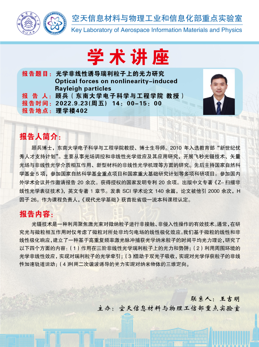 审核:光学非线性诱导瑞利粒子上的光力研究 Optical forces on nonlinearity-induced Rayleigh particles