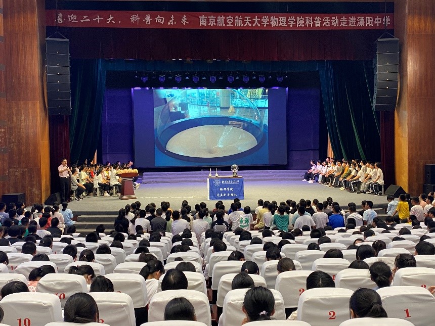 为普及科学知识、弘扬科学精神、传播科学思想,进一步加强校地联动,9月中旬,av频道 走进溧阳中学开展“物理探索+”系列科普活动。溧阳中学德育处主任杨福松、av频道 副院长李晋斌、党委副书记欧珊、团委书记梁欢,av频道 “爱益科普”团队成员与溧阳中学1000余名高中师生参加了此次活动。