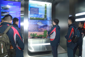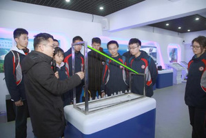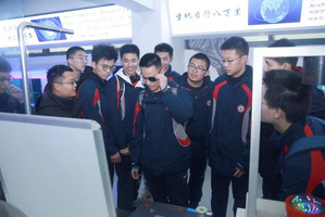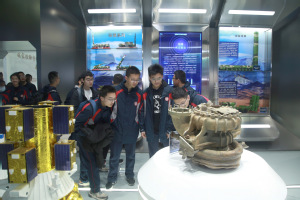 他们首先参观了航天教育教学基地,基地集中展示了中国航天事业的发展历程,以及航天“星、箭、弹、船、器”的技术型谱、设计原理、整体结构等相关内容。在基地讲解团志愿者的讲解下,同学们饶有兴致地有序参观基地,认真地研究卫星模型及各种深空探测器。