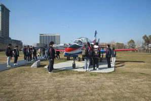 随后同学们前往“御风园”参观,在这里同学们看到了新中国自行生产的第一型飞机“初教-5”、抗美援朝的“米格-15”战斗机、我国自行设计制造的歼8和歼-8Ⅱ歼击机、长征四号运载火箭、南航研制的大型无人靶机长空一号等19台航空航天器。很多同学第一次近距离接触国之重器,全方位了解了空天装备,异常兴奋。