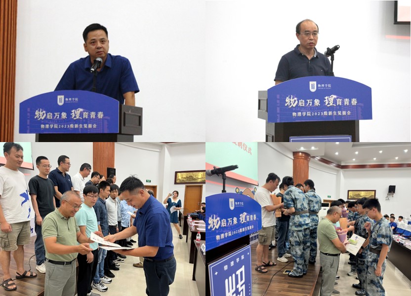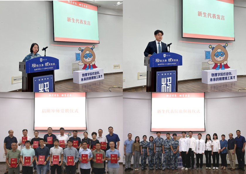 新生见面会上,刘友文致辞鼓励新生强化学习内驱力、锤炼创新能力、提升幸福感受能力,期待同学们四年中既学有所成,又能与老师同学结下深厚情谊。陈修文从学会学习、学会生活、学会做人三个方面寄语新生,祝福新生未来四年在av频道 成长成才,为社会、为国家、为人民贡献南航物理人青春和力量。会上,学院还为16位启明导师颁发聘书,导师们未来将从从专业学习、科创竞赛、学术研究、素质培养全方面为新生提供四年一贯的指导和帮助。本研新生代表发言后,10位优秀学生代表上台参加院徽佩戴仪式,正式成为av频道 荣耀的一份子。