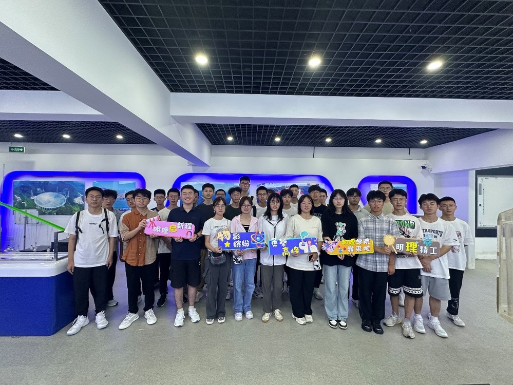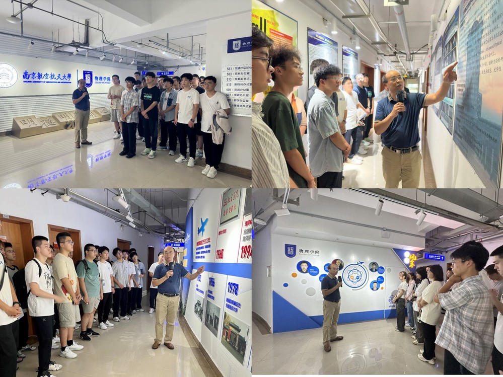 在学院老师、学长学姐的带领下,新生们通过楼宇文化认识学院全貌。刘友文在学院发展历程时间轴前,为新生介绍了物理学科发展的历史与前景,解读了院训“明德、明理、明心”的深刻含义,并通过学院的使命、愿景激励同学们,以优秀院友为榜样,理工融通、学以致用,成为既通晓哲理物理又具备工程实践能力的拔尖人才。