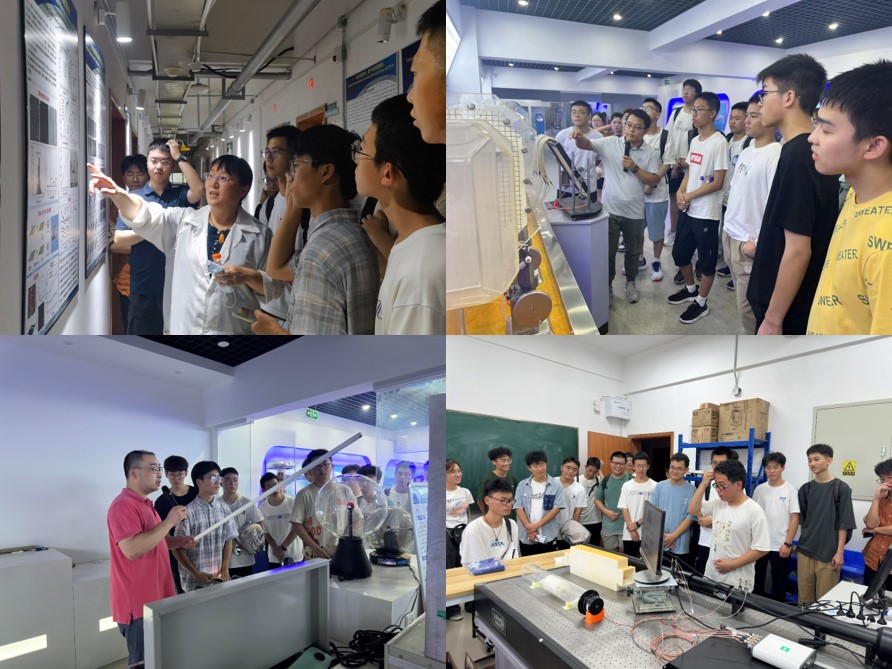 在校百强团队阚彩侠教授、物理实验中心老师和研究生的带领下,新生分批参观了工信部重点实验室、主题创新区、物理实验演示中心,了解老师们的科研方向及成果,直观感受物理实验环境,并了解优秀学长学姐们的科创经历。
