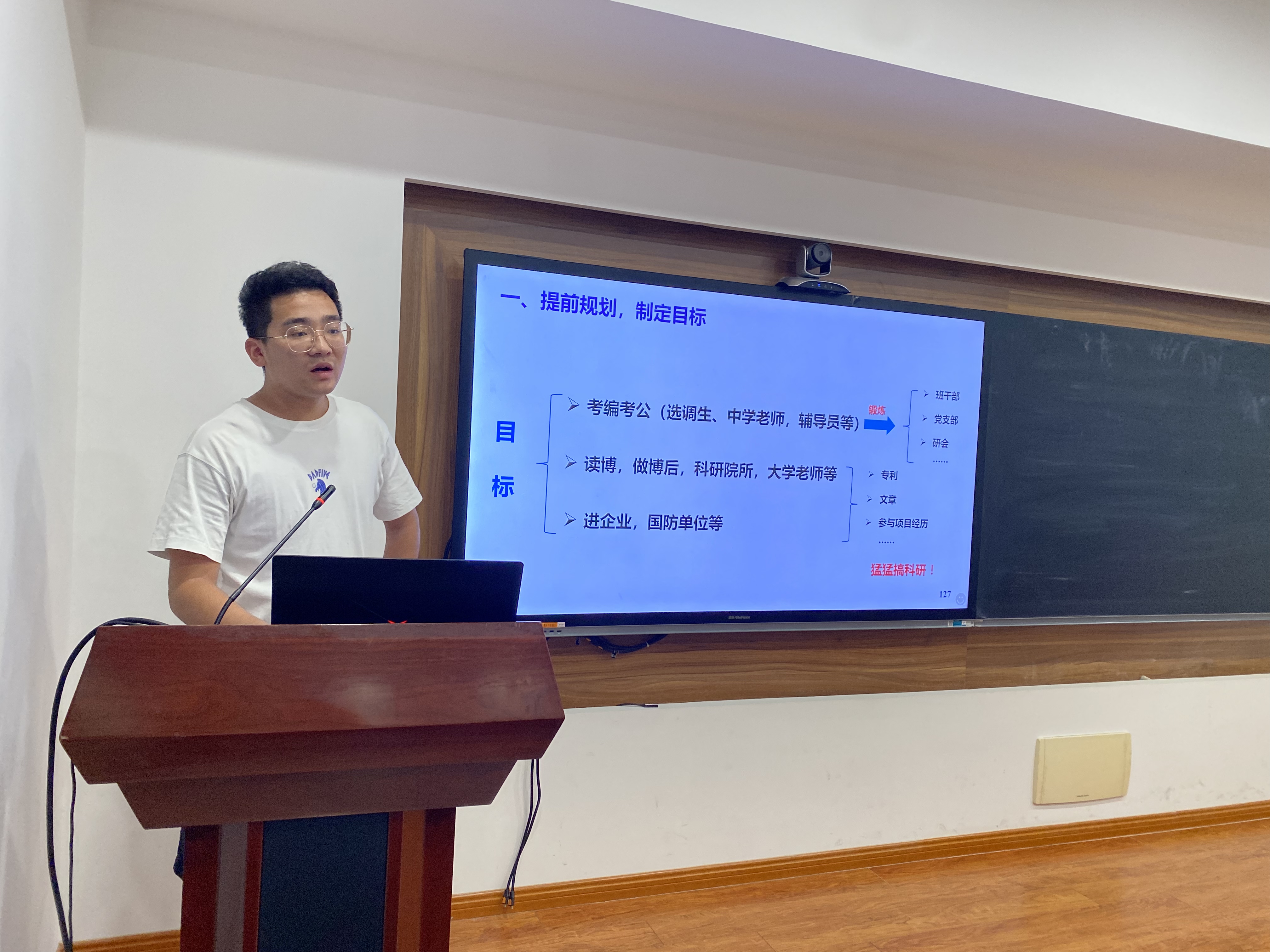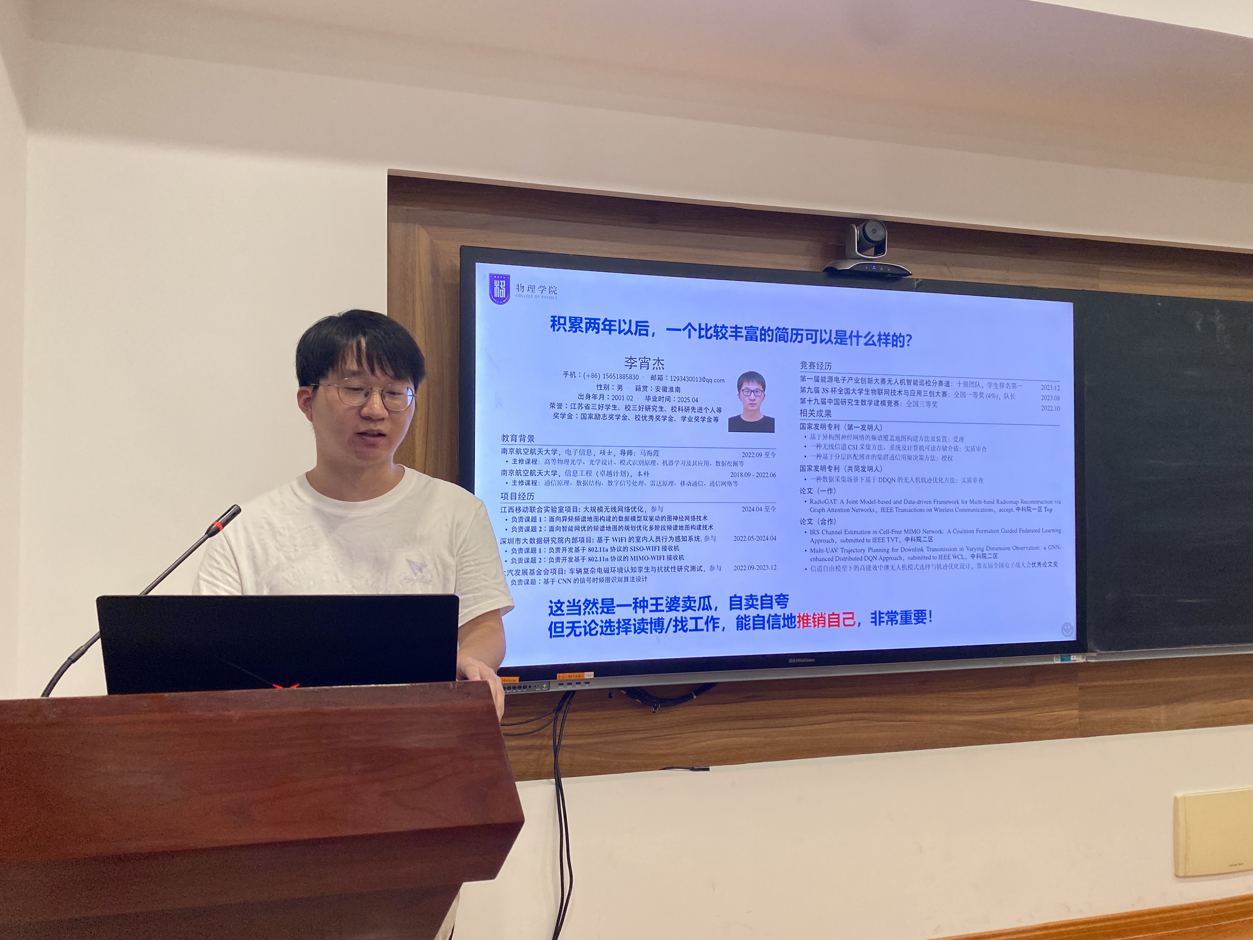 在研究生朋辈经验交流环节,物理学专业2023级博士生、我校“引航计划”第四期成员李栋面向新生作经验交流分享,结合自己的求学经历向学弟学妹们传授了科研学习经验,建议大家要做好时间管理,制定研究计划电子信息专业2022级硕士生、江苏省三好学生获得者李宵杰向新生介绍了自己对本专业的学习体会他鼓励学弟学妹们要立志专心科研,在未来的研究生时光里有所成长、有所成就;电子信息专业2023级硕士研究生、av频道 2024年度“先锋计划”硕博实践团团长袁严清分享了他暑期带队在国防单位参加实习实践的所见所闻所感,他号召同学们要扎根基础研究,为国家高水平科技自立自强做出应有贡献。