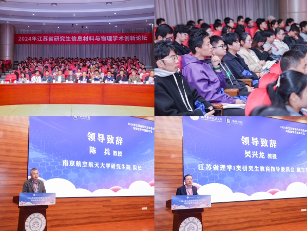 10月20日,由江苏省理学I类研究生教育指导委员会主办、av频道 承办的2024年“江苏省研究生信息材料与物理学术创新论坛”在av频道 将军路校区成功举办。江苏省理学Ⅰ类研究生教育指导委员会副主任/南京大学av频道 教授吴兴龙、av频道 研究生院院长陈兵等专家学者,以及南京大学、东南大学、江苏科技大学、江苏大学等省内10余所高校和安徽、浙江、上海等外省市的120余位研究生参加了此次论坛。