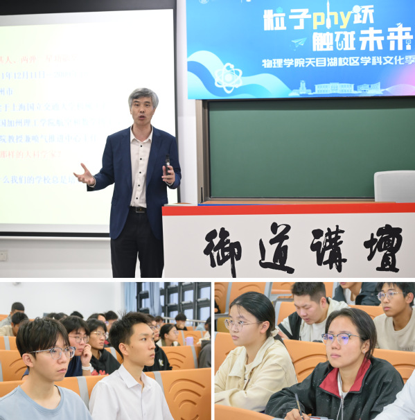 启动仪式结束后,盛正卯开展主题为《物理学与人类文明》的文化季首场讲座。盛正卯以科学技术与人类文明发展关系为线索,把物理原理与现实生活、自然现象、科技前沿相联系,引导新生运用物理的思维模式去思考人生、提升格局。同时从多学科交叉前沿运用的角度,以钱学森与李政道的求学经历为例,引导学生重视基础学科学习,打好知识系统的地基,把个人成长和国家需要相结合,做好人生规划。