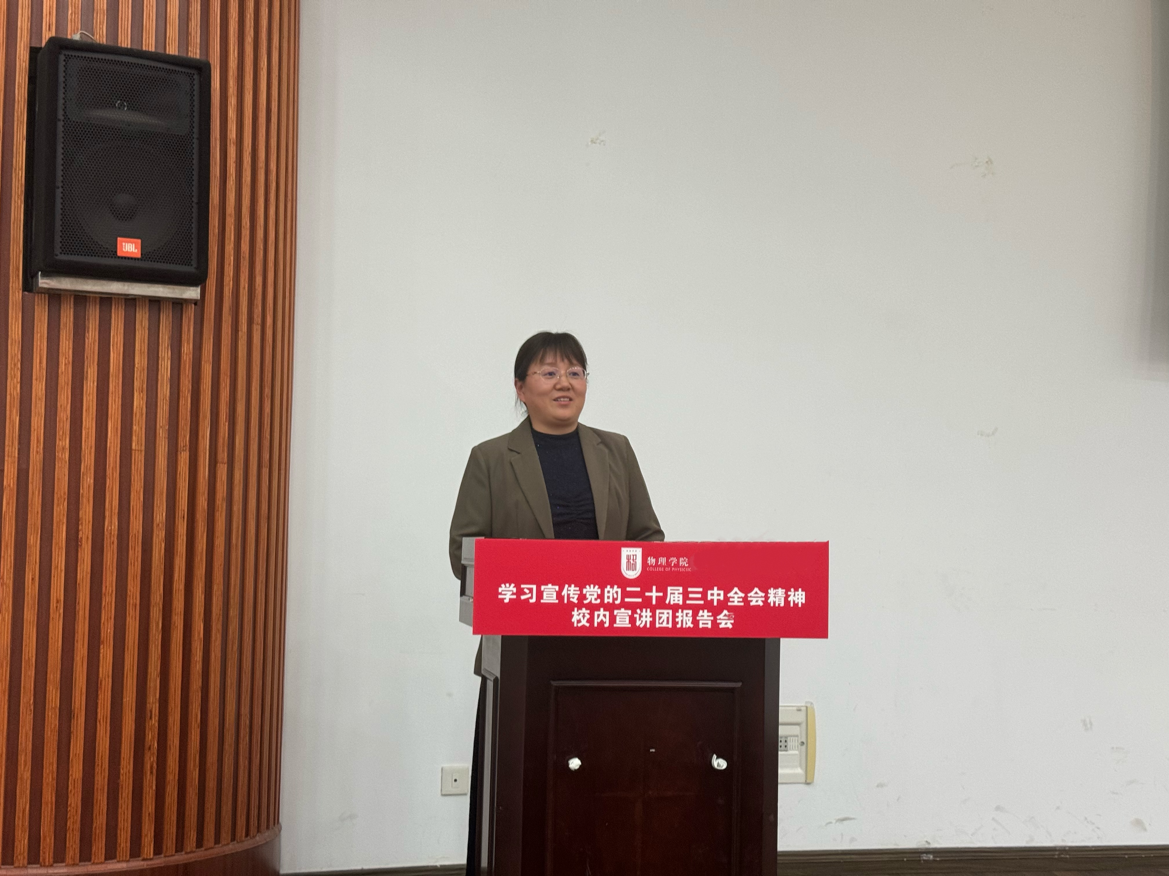 讲座前,学院还进行了新成立党支部授旗仪式。为了优化党支部设置,强化对研究生党员的教育管理,学院调整成立了物理系研究生党支部、应用物理系研究生党支部、信息光子学团队党支部。学院党委副书记欧珊向三位支部书记授旗,并勉励他们将党建工作和科研学习相结合,共同提升党建与学术工作的质量和水平。