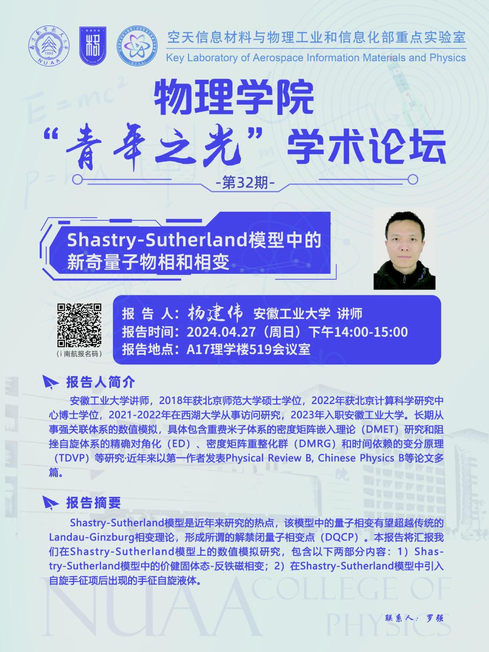 审核:Shastry-Sutherland模型中的新奇量子物相和相变