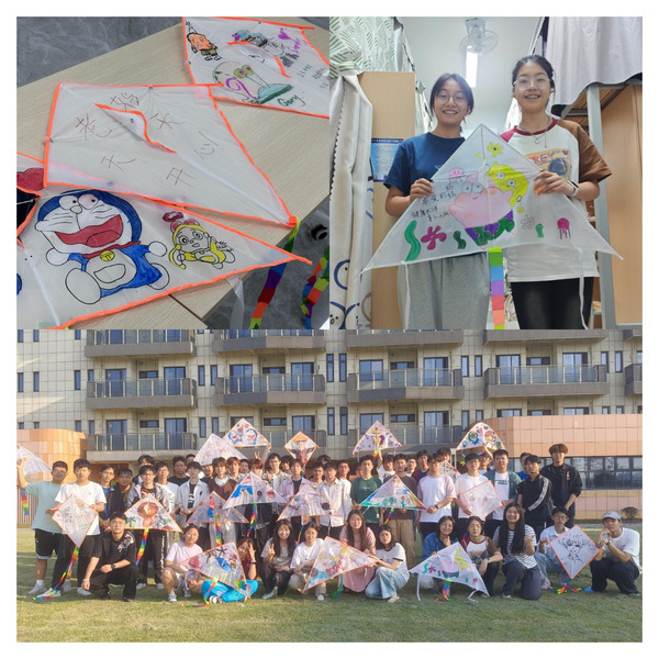 活动伊始,进行自由绘制,用画笔描绘自己的热爱,抒写对母亲的美好祝愿,将天马行空的想象与爱意变为独一无二的风筝。绘制结束后,部分小组依次分享风筝创意:“我们组的风筝主要绘制了一些花朵、蓝天、太阳,想要送妈妈一朵手绘鲜花,永远美丽快乐。”“我们组比较直白一些,直抒胸臆的写了‘爱你老妈’,感谢妈妈一直以来的守护。”