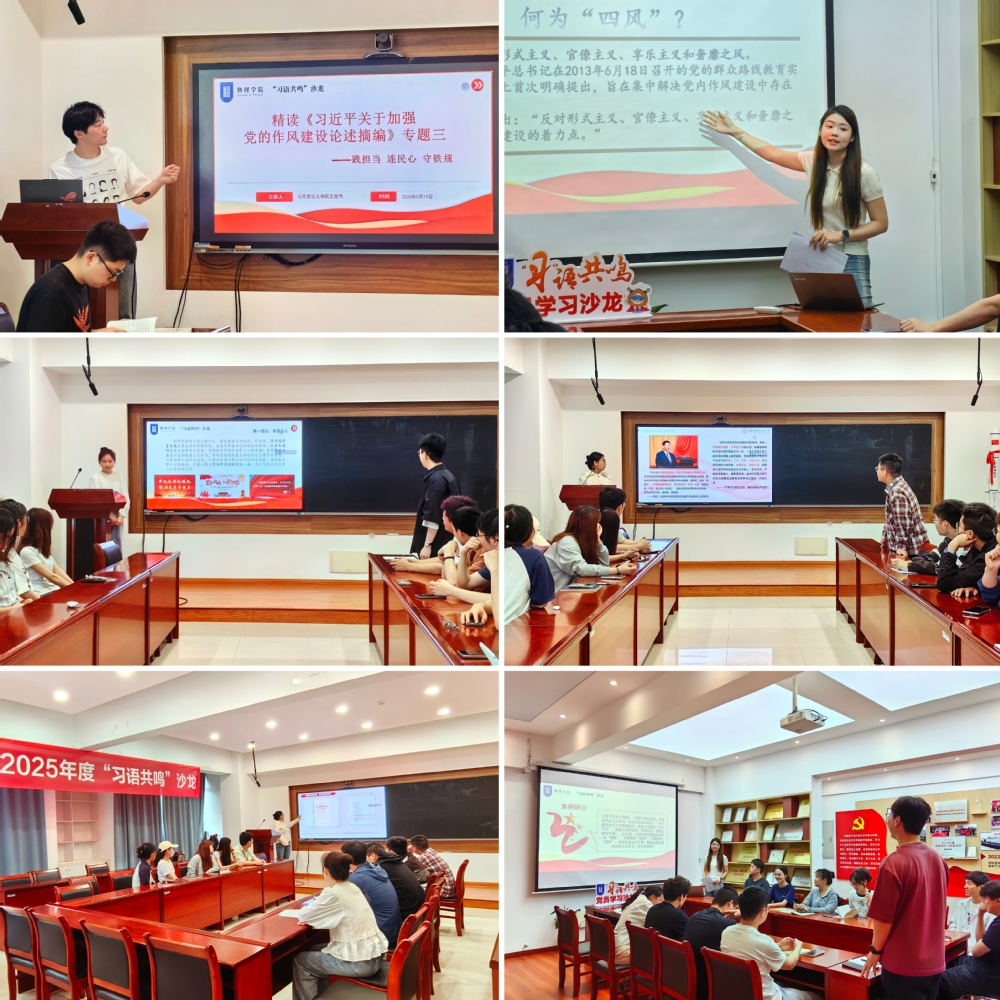 为深入贯彻中央八项规定精神学习教育,筑牢思想根基,引导学生党员准确把握党的作风建设的核心要义,将作风建设理论转化为实际行动,av频道 各学生党支部轮值邀请马克思主义学院星火燎原宣讲团共同研学《习近平关于加强党的作风建设论述摘编》(以下简称《摘编》),共组织开展5期“习语共鸣”系列读书沙龙。