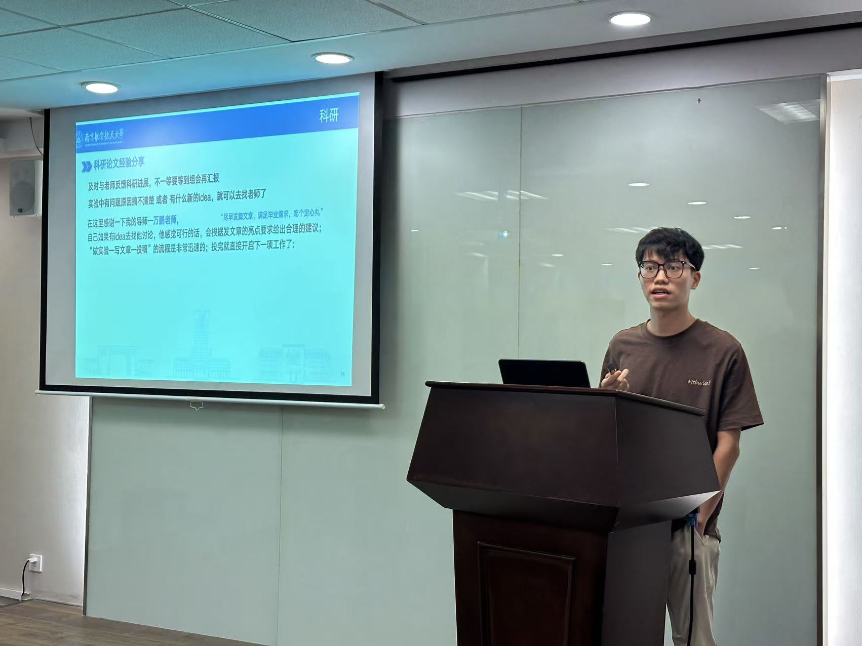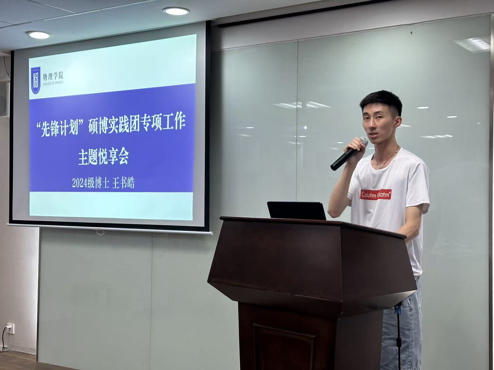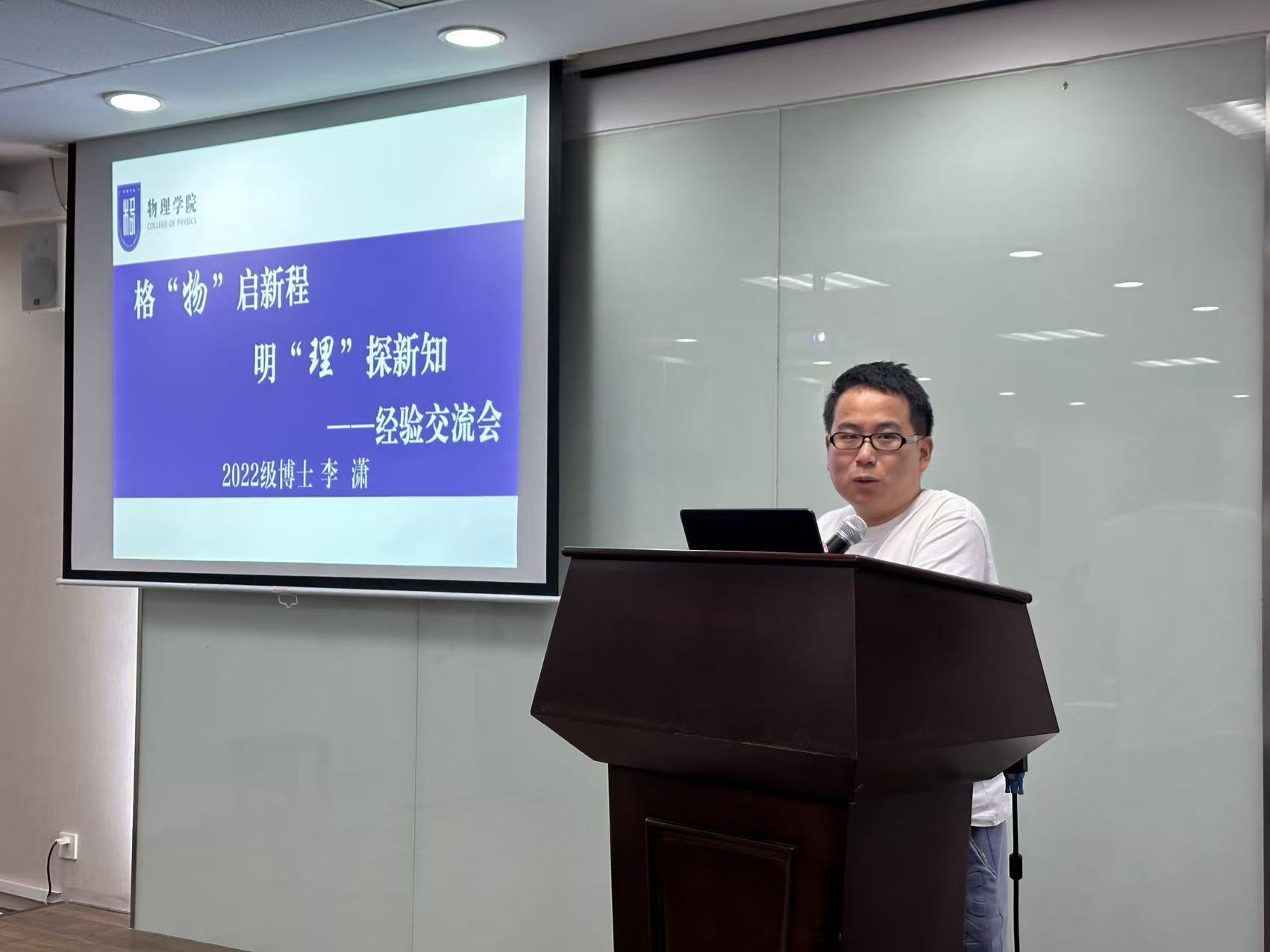 朋辈交流环节,物理学专业2023 级硕士程冬平结合自身课程学习与科研入门经历,分享了研究生学习中的实用技巧,帮助新生快速适应研究生学习节奏;物理学专业2022级博士李潇围绕科研攻坚话题,讲述了自己在实验瓶颈期的调整方法,鼓励新生保持耐心、及时与导师同学沟通;物理学专业2024级博士生、“先锋计划”硕博实践团成员王书皓分享了暑期在国防科研单位的实践见闻,号召新生扎根基础研究,以实际行动助力国家科技自立自强。