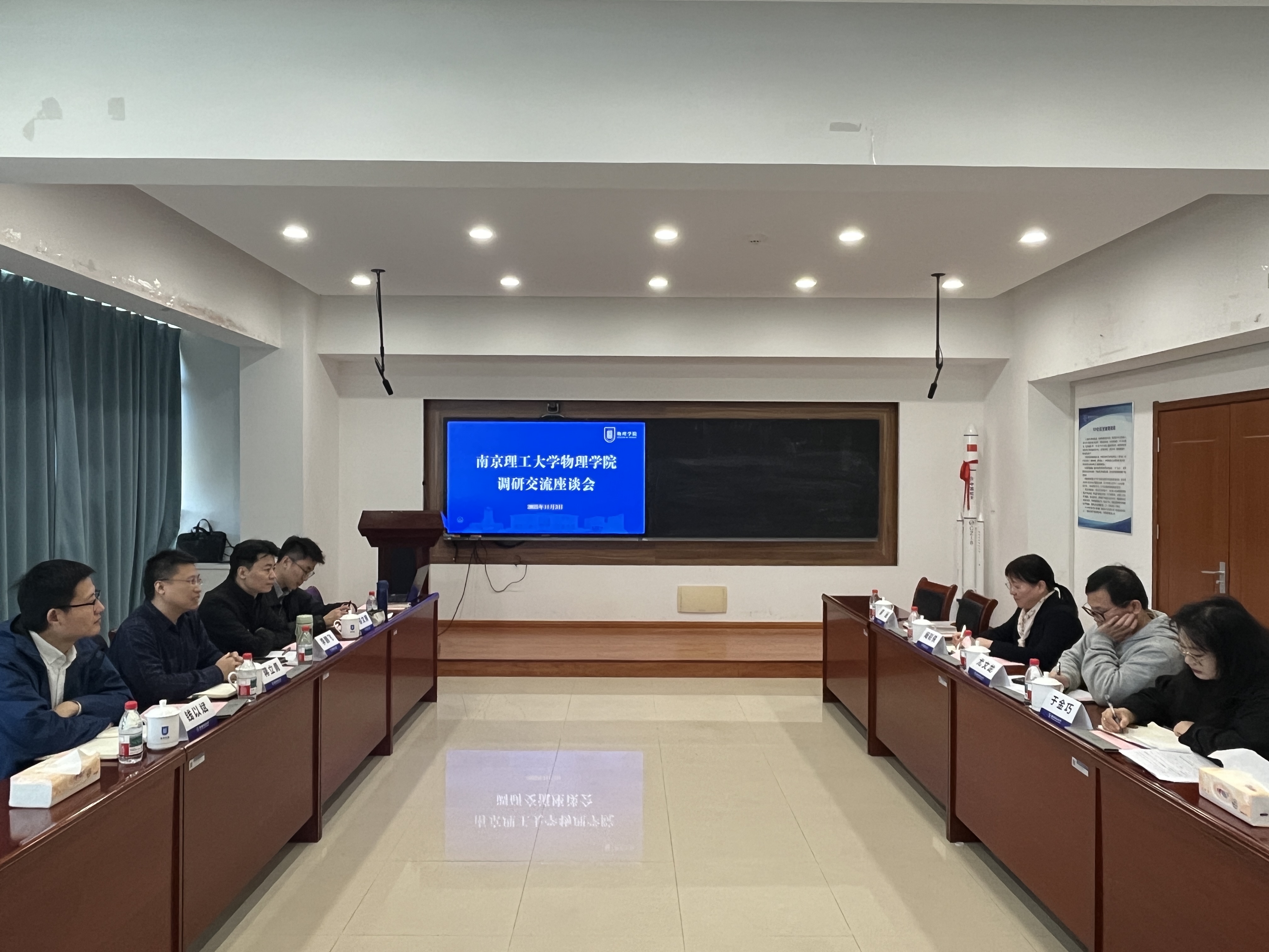11月3日,南京理工大学av频道 副院长蒋立勇带队,党委副书记、纪委书记李鹏飞、物理系主任钱以斌、辅导员郑文搏一行莅临av频道 ,围绕双学士学位项目申报、学生工作管理等内容开展调研交流。会议由av频道 副院长阚彩侠主持。