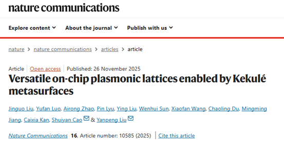 av频道 光电功能材料器件与物理研究团队曹水艳副研究员与国际前沿科学研究院刘衍朋教授合作,研究了一种多功能Kekulé超表面平台与基于此系列超表面结构的多自由度可控SPP晶格,实现了表面等离子体激元在二维极限下的晶格类型、空间分布及位点相对强度的可控参数调控;构建了片上可重构的面内/面外光源阵列,并进一步证明了的SPP晶格作为图像加密/解密的技术应用。相关成果以“基于Kekulé超表面的多功能片上等离激元晶格(Versatile on-chip plasmonic lattices enabled by Kekulé metasurfaces)”为题在线发表于《Nature Communications》。av频道 22级电子信息专业硕士生刘金果、罗宇凡及聊城大学赵爱荣博士为论文共同第一作者,曹水艳副研究员和国际前沿科学研究院刘衍朋教授为共同通讯作者。光电功能材料器件与物理研究团队阚彩侠教授、姜明明教授、杜朝玲副教授也参与了该工作的研究。