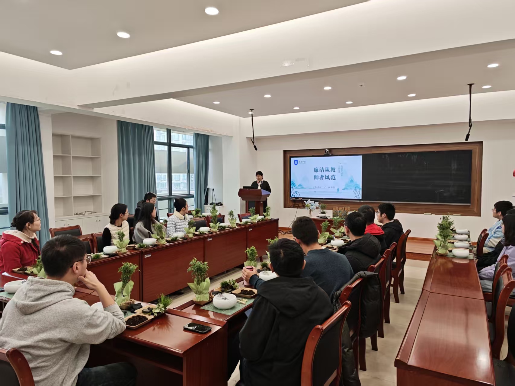 为巩固拓展中央八项规定精神学习教育成果,持续推进作风建设常态化长效化,进一步加强“清廉学院”建设,12月11日,av频道 举办“廉洁从教·清风润院”师德师风教育主题活动。学院党委纪检委员阚彩侠以及20余位师生代表参加本次活动。